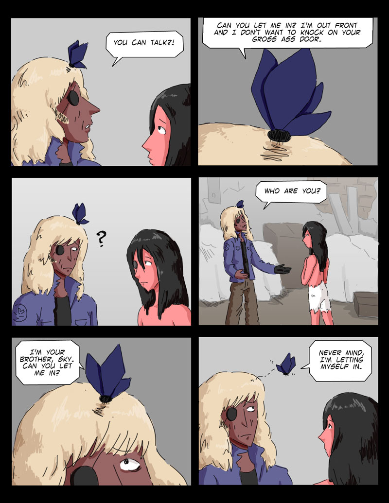 Zombra Blueberry wakes up to discover his older brother (Sky) is in his room. There is something off about Sky so Zombra lets him crash on the couch.