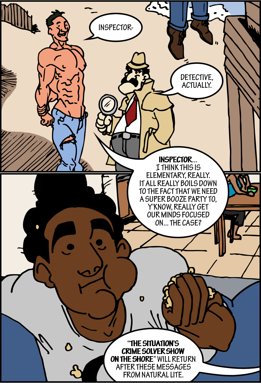 I once said that we're hard on The Jersey Shore in the notes on an older issue. I was not lying. When I drew this I had to look up The Situation, because while I have heard him spoken of, and seen him illustrated on The Simpsons and South Park, I had never actually seen the man. I don't know how old he is, or if it's just all the tanning but that man looks about a thousand years old.