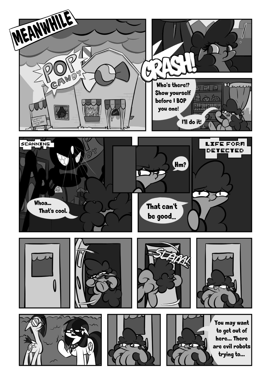 Bitsy Poof gets into trouble and the store gets destroyed. For more cool Itsy Bitsy Adventures stuff, check out the blog at "http://itsybitsyadventures.tumblr.com/" where you can also pre-order a physical or digital version of the finished comic.