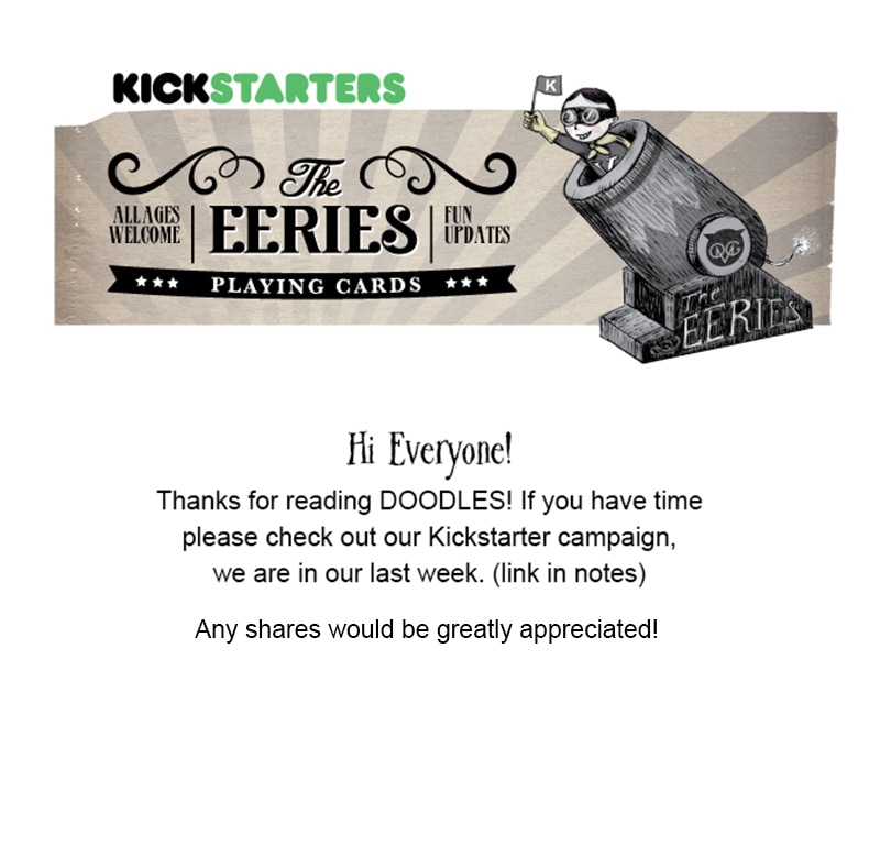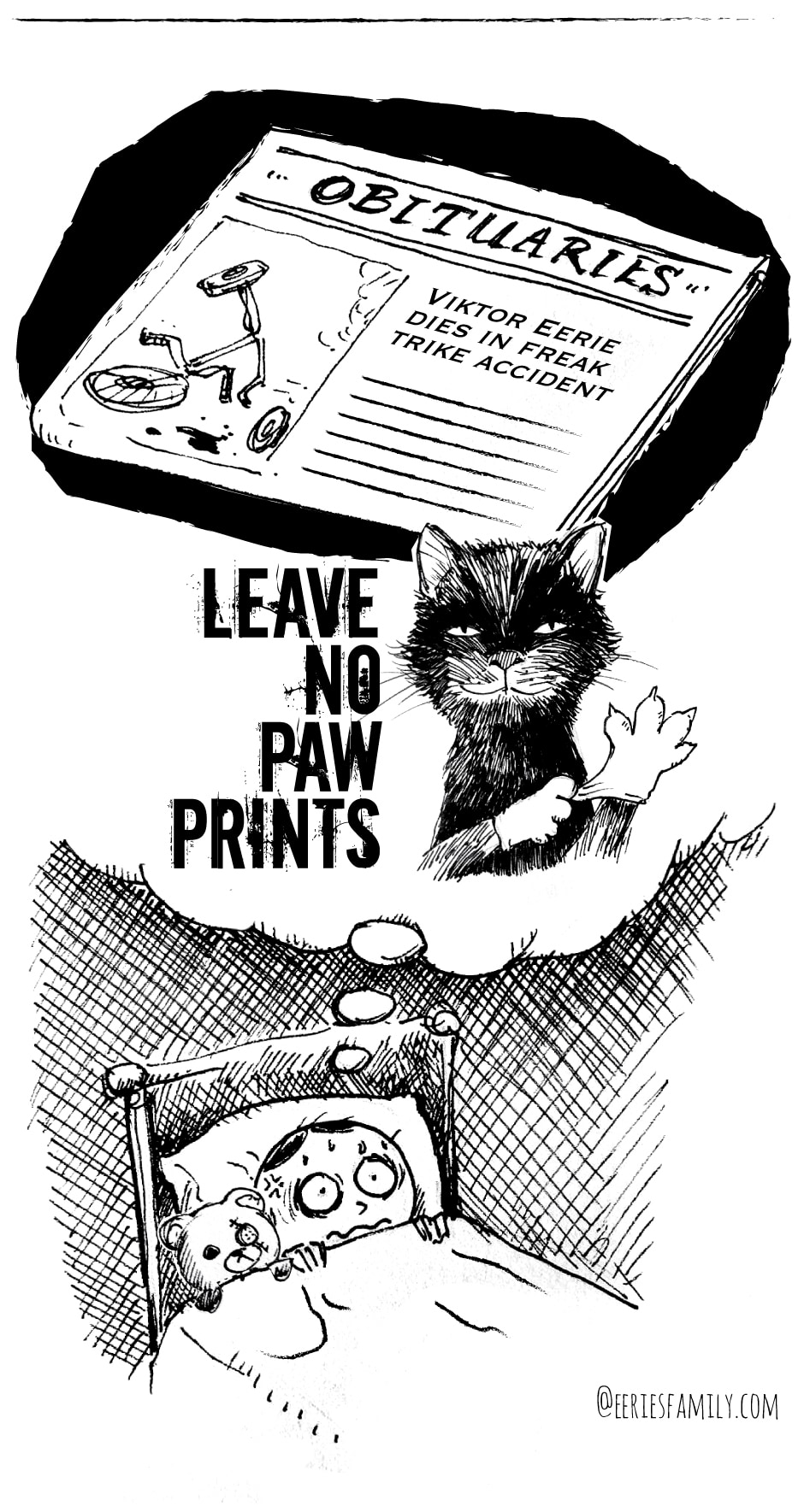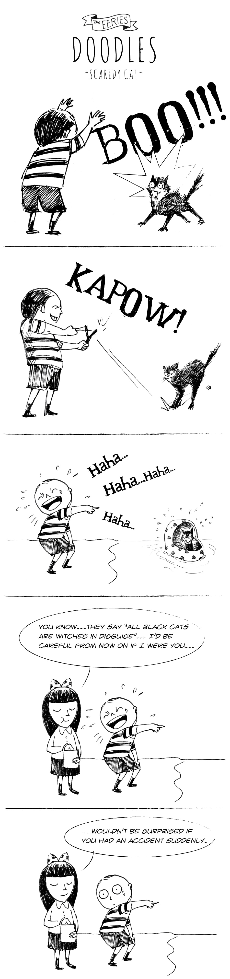 A quick doodle of a story. Meet Klara, Viktor, Baby Wick and POE, the black cat! Catch their shenanigans here on Sundays. Website: www.eeriesfamily.com