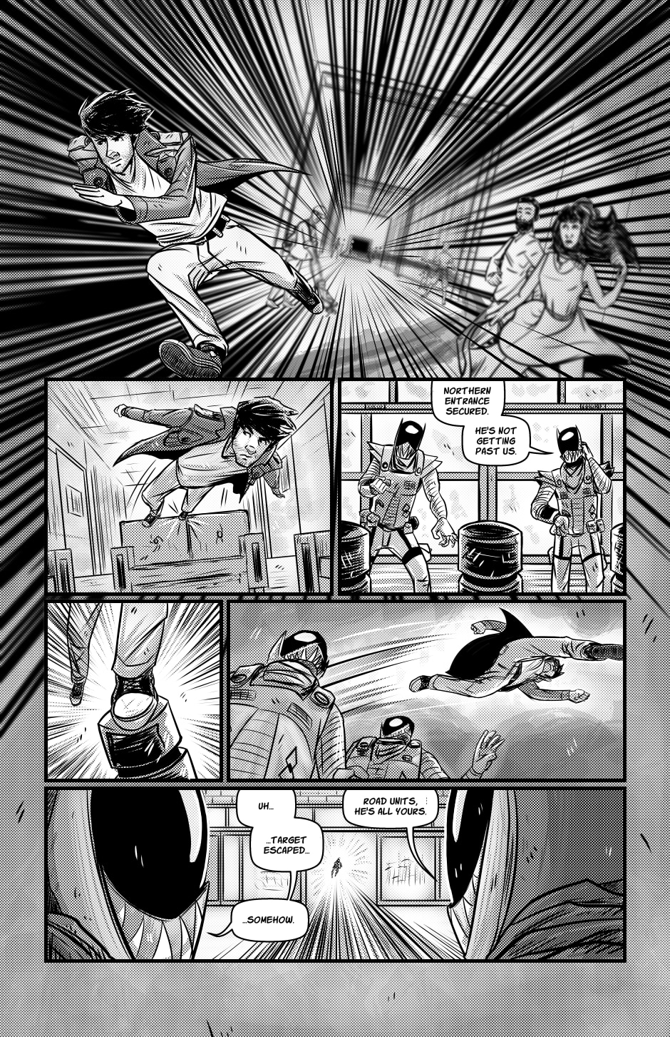 Well, we've finally made it past one of the most daunting scenes for Jason and I to create in this first chapter. There is still some more to come within the next few, final pages, but Colton making his way to freedom with THE jacket is an important one. I mean, what would a story called The Jacket be without the hero having that jacket?