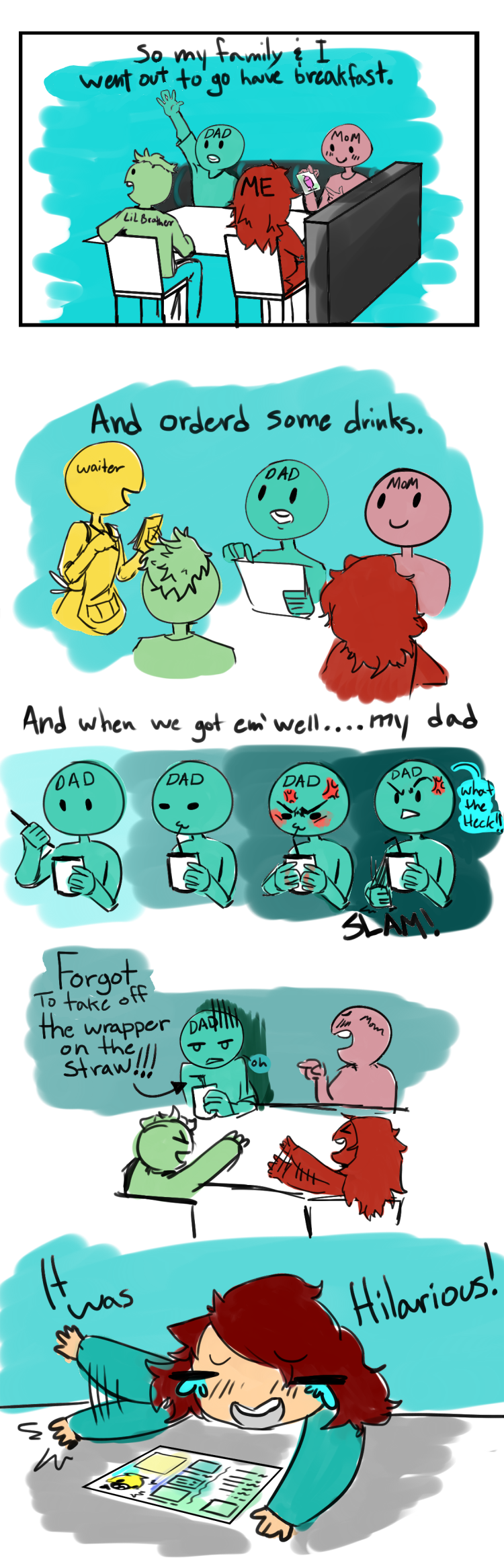 I dont know why but it was just super funny lol, It was so funny my mom even told the waiter. ᕕ( ᐛ )ᕗ (This is a very random comic '-')