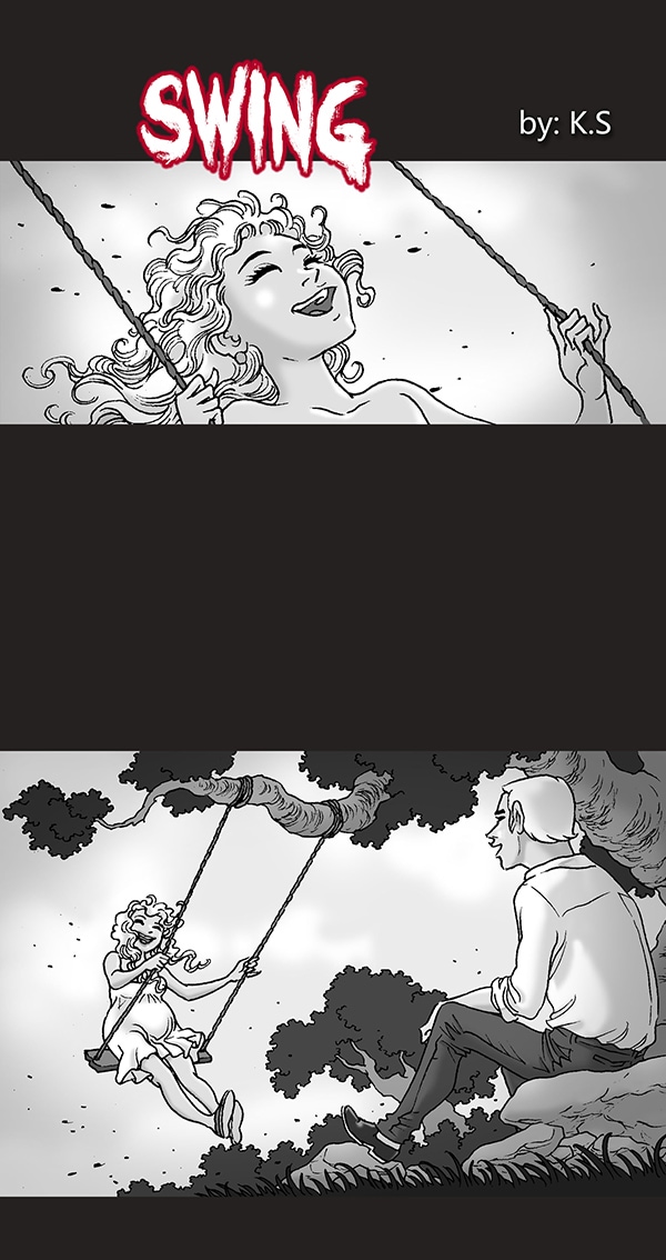 Just casually swinging on the dead corpes of her husband...This is the type of horror comic I missed😃😃