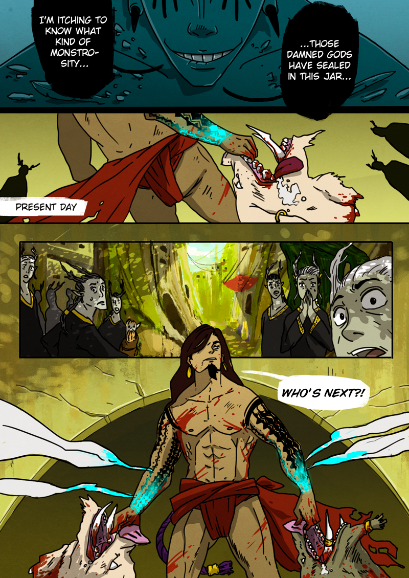A deranged vagabond, a mischievous God of Magic, a Sky God trapped in the void, and a withered former God of the Sea —All intertwined in a twisted ensemble of heinous plots, revenge, and redemption.