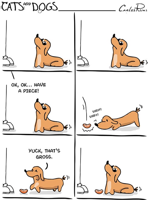 This is totally my cat. She begs rught along side the dog, but never likes anything i drop... haha