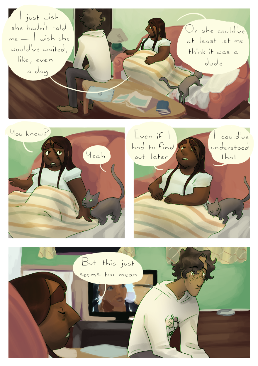 Sorry this one comes a couple days late! ;_;)/ It's the first time I've ever missed an update by more than a few hours, but I had a really unusually strenuous week... the good news is that my thesis film is just a month off completion, and after that I'll be going back to 2 pages a week, or more if I can manage it! I wanna move the story along much faster!