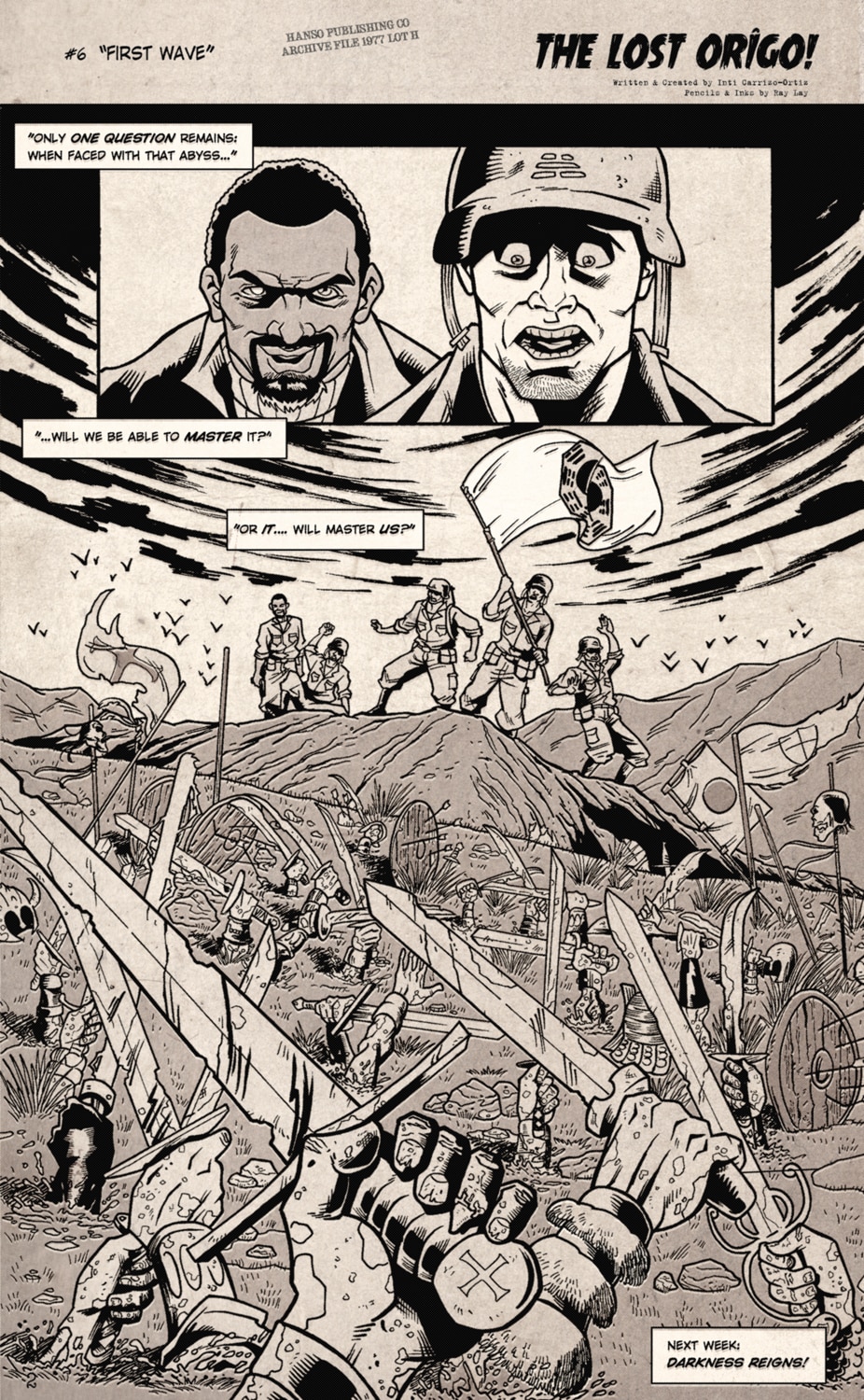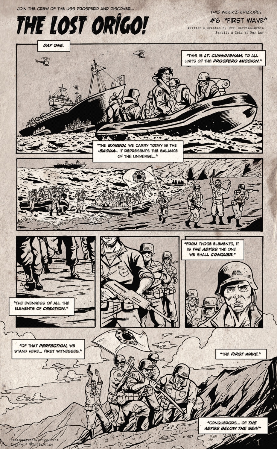 The Island... DAY ONE. Arrival of the Conquerors of the Abyss. Pencils & Inks by Reinaldo Lay Written & Created by Inti Carrizo-Ortiz