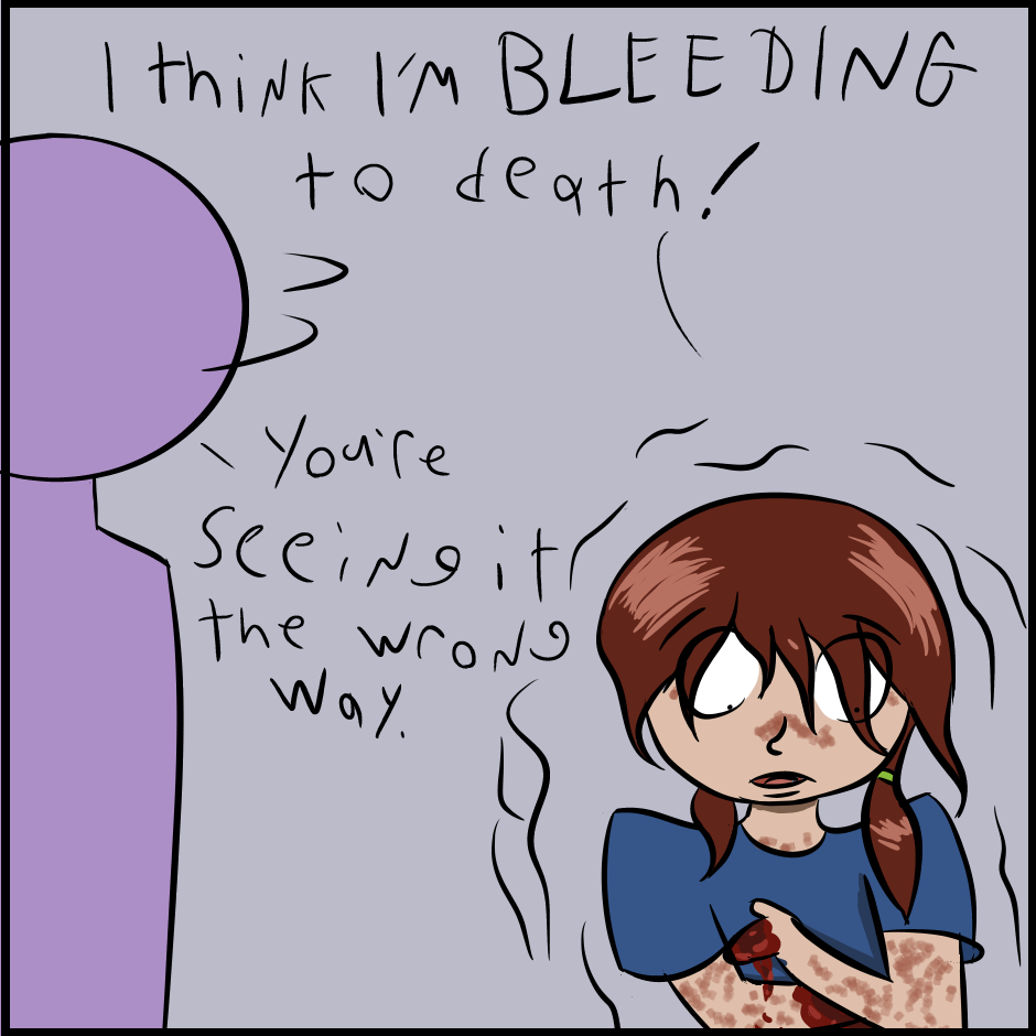 So I had this idea when someone had insulted another person and told them they were seeing it the wrong way and decided to doodle this. And this took way longer than expected to complete as life got in the way. (Life like, mom went to the hospital, weeks later and then good ol' anxiety rearing its ugly head)