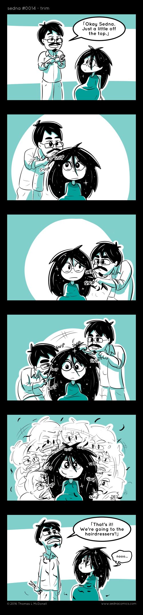 Sedna has a lot of hair. I should probably point out, 「these weird looking brackets」 are Japanese quotation marks, which I'm using to indicate that the person is talking in Japanese. Hopefully they're not too distracting.