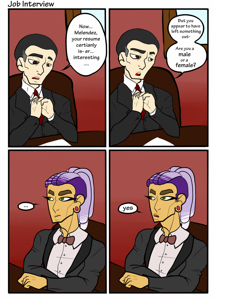 Following a bigender masculine Mexican, their 2 romantic partners and their insecure employee, Feelin' Uncomfortable? is a collection of short comics confronting topics that I used to make the school board as uncomfortable as possible about the harsh realities of life.