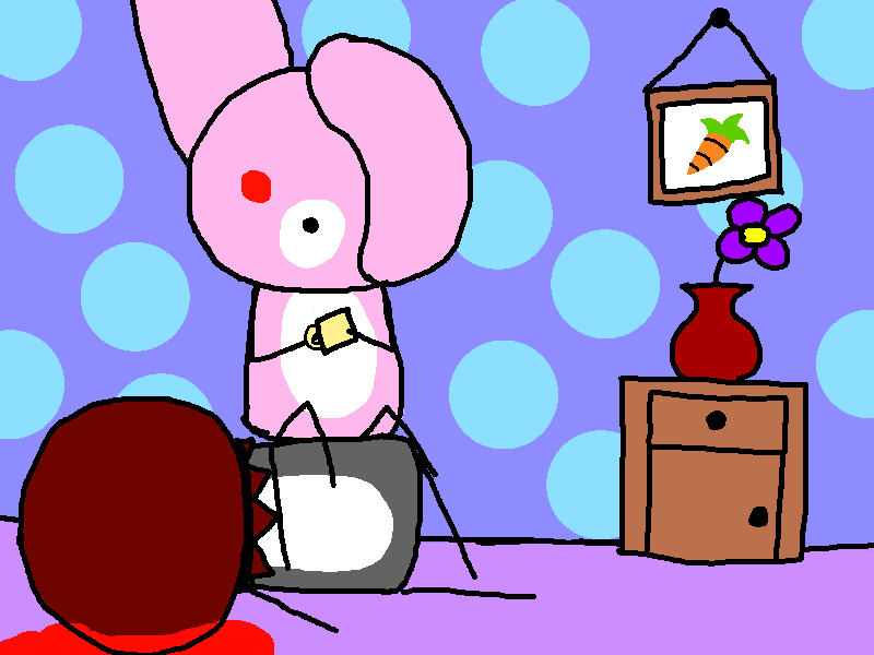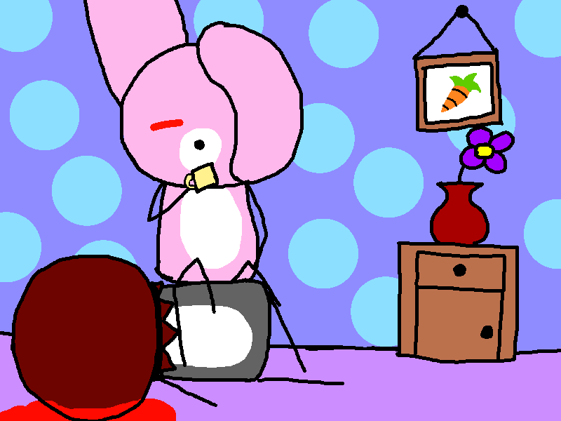 just a normal day for little pink rabbit and his friend