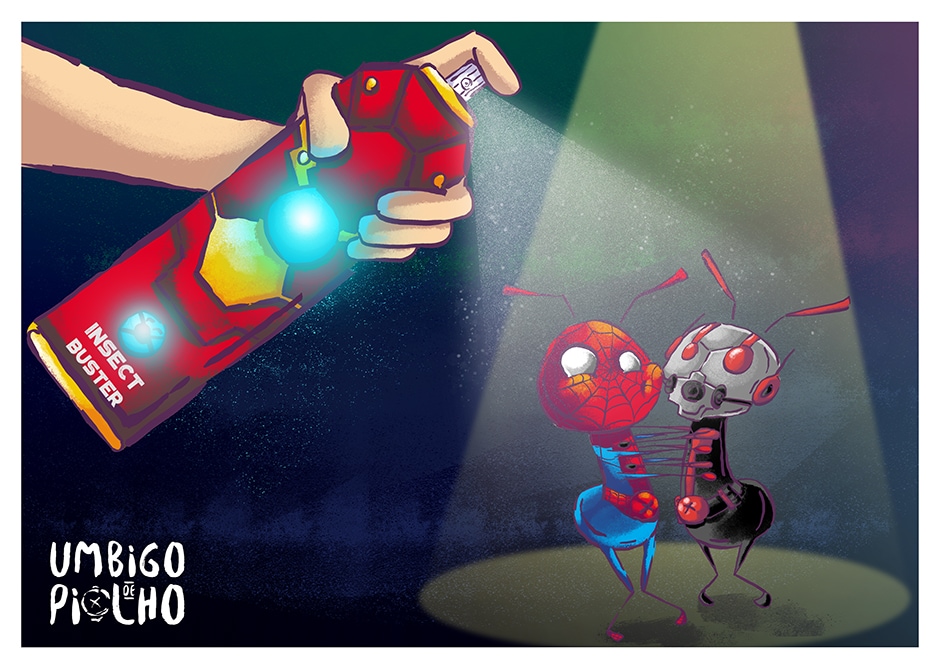 Umbigo de Piolho é uma doença causada por um tipo peculiar de piolhos, cujo sintoma é a bobeira e o estágio final a loucura. Os três hospedeiros originais hoje transmitem a doença via bom humor para populações com excesso de sanidade no organismo. Tudo começa com a sensação de que algo habita o couro cabeludo, logo depois surgem os comichões. Não adianta pentear, passar vinagre ou maionese no cabelo, não há remédio uma vez que os piolhos com umbigo infestam a vítima. Resta apenas rir e permitir que eles façam o seu trabalho: encher o dia a dia com tirinhas sem pé nem cabeça. Ou melhor, com seis patas.