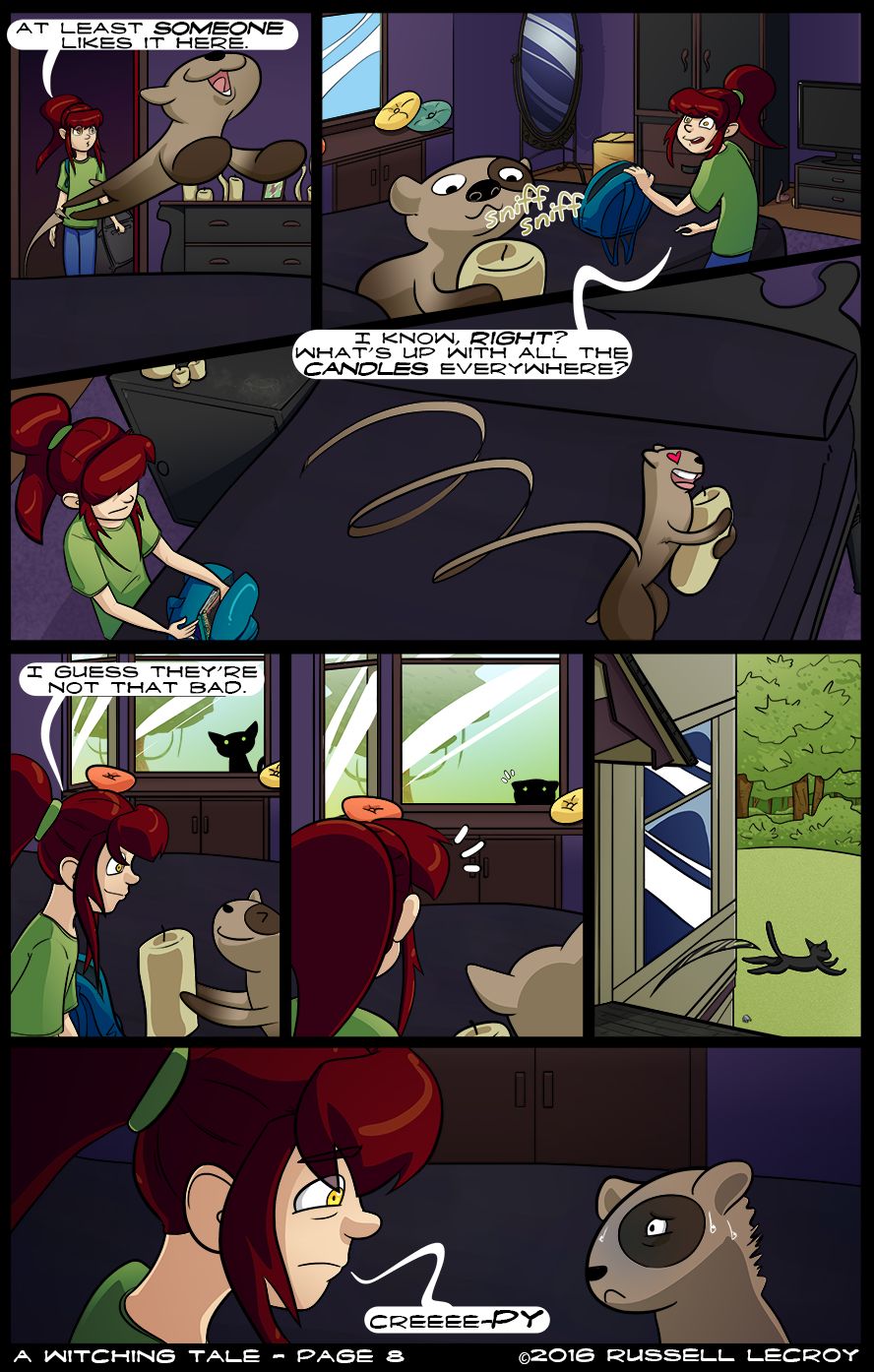 #A_Witching_Tale #Halloween #hallowing #cat #black_cat #ferret #lucy #candles #bed #red_hair #Book_bag #back_pack #bed_room #Window #creepy #spooky #spying #witch #domino #trees #upstairs #Mirror #pillows #pillow #surprised #scared #girl