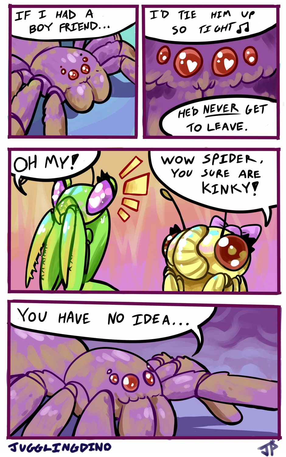 Mantis and Cicada follows the lives and relationships of Mantis and her friend Cicada as they encounter and befriend all manner of other insects, arthropods, and arachnids. They explore concepts ranging from entomology to relationships and gender expression.