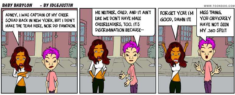 Adney thinks it's not enough that gay girls could be pom pom girls, he wants to be one too!