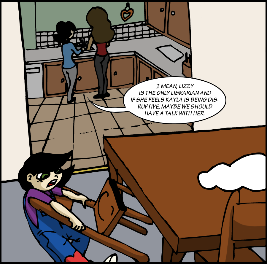 You know you’re in trouble when Kayla acts without speaking and disappears. Whatever she’s up to will eventually be disapproved of by her parental units. In this case, all four of them!