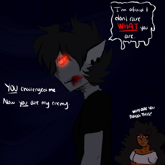 Vampires are an incredibly aggressive race. Overpopulation plagues their world, and their violent nature causes them to fight relentlessly, for even the most ridiculous of reasons. Murder is not uncommon. Despite this, too many vampires are being born, and not enough dying.