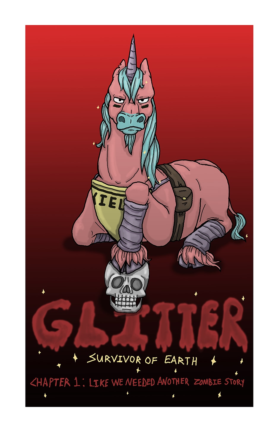 The heartwarming* tale of a unicorn fighting his way through the end of the world, fighting off zombies and making friends along the way. (*Note: This story is not heartwarming at all.) Updates every Saturday.