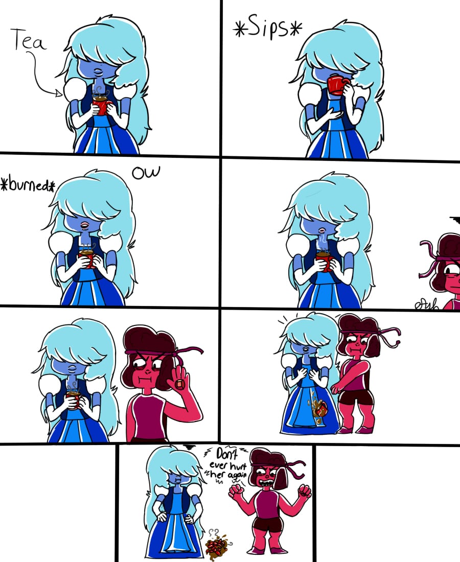 hey hey I'm not dead sorry for not posting D: I'm working on a lot of stuff (btw sapphire got that mug because it reminded her of ruby) [also I'm going to try different style to see witch one best fits this comic series]