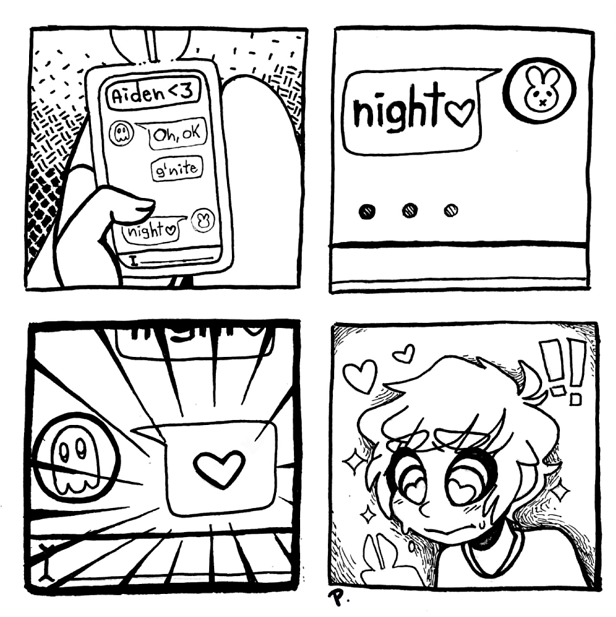 Thank you Killuz for taking the time out of your art block to draw this for us, it is absolutely precious and I just adore your style. Look at that goob! This is such a precious and simple prompt yet it has my heart aching!
