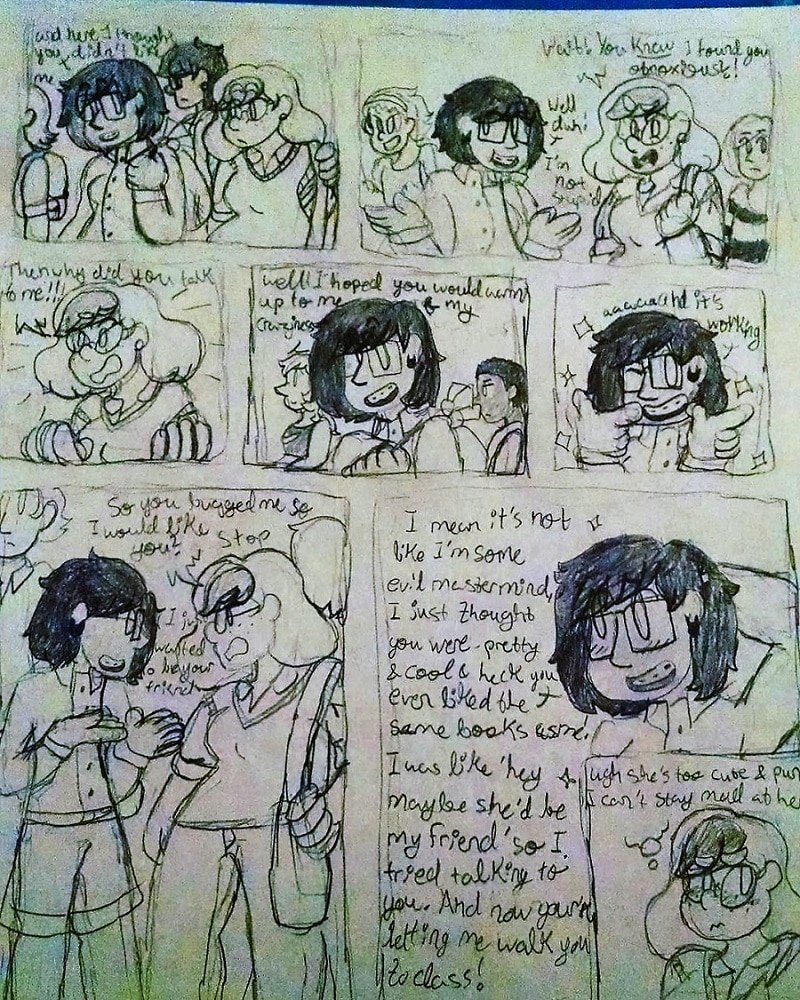 THIS HAS LESBIANS IN IT! Got your attention? Good. This is a high school comedy with hints of drama and loads of heart about six girls(shown in thumbnail from left to right): Odette, Carson, Jet, Leah, Viola, and Maya. These gals will brave the trials of high school tropes and fall in love long the way! Currently, I am working on something new for the series so look out for it!
