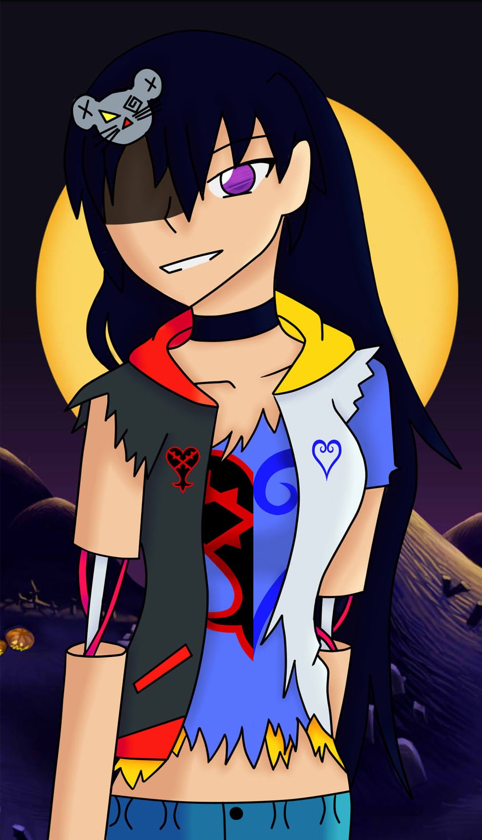 My Kingdom Hearts OC I made. This is her in her Halloweentown form/outfit. She's my first born child. First OC I ever made and the most worked on. She started out as a Mary Sue but now I am proud to say that she is not.
