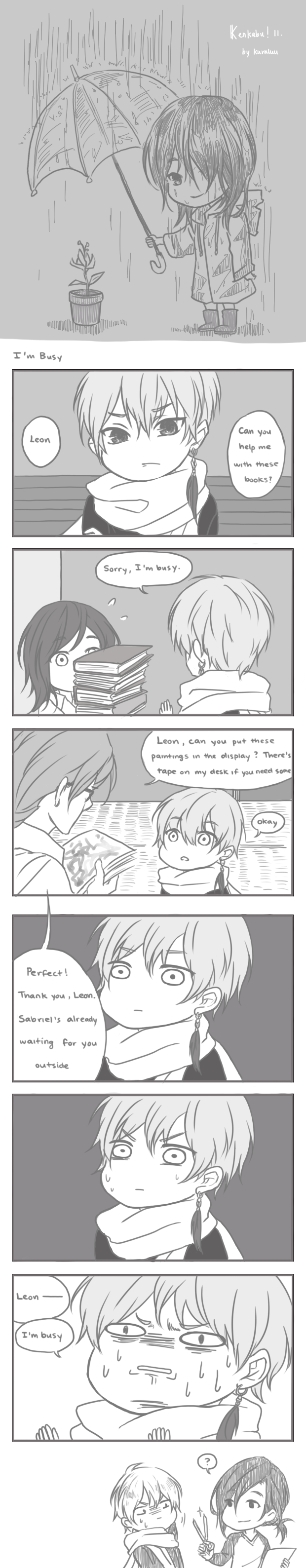 I wonder why Leon's so terrified of his ponytailed classmate Edit: Aaand suddenly BACKGROUNDS :D
