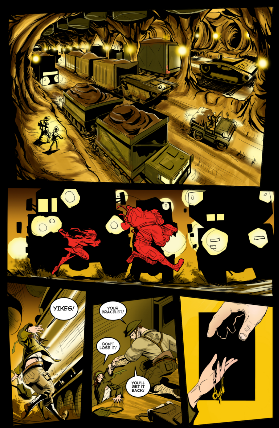 Bolt Action is a comic influenced by classic adventure serials, screwball comedies, and a WWI-aesthetic of biplane dogfights, trenches, and zeppelins. The only thing Roulette, Danny, and Olive do better than getting into trouble, is finding their way out… find out what happens every week on another high-flying, low-digging issue of… BOLT ACTION!