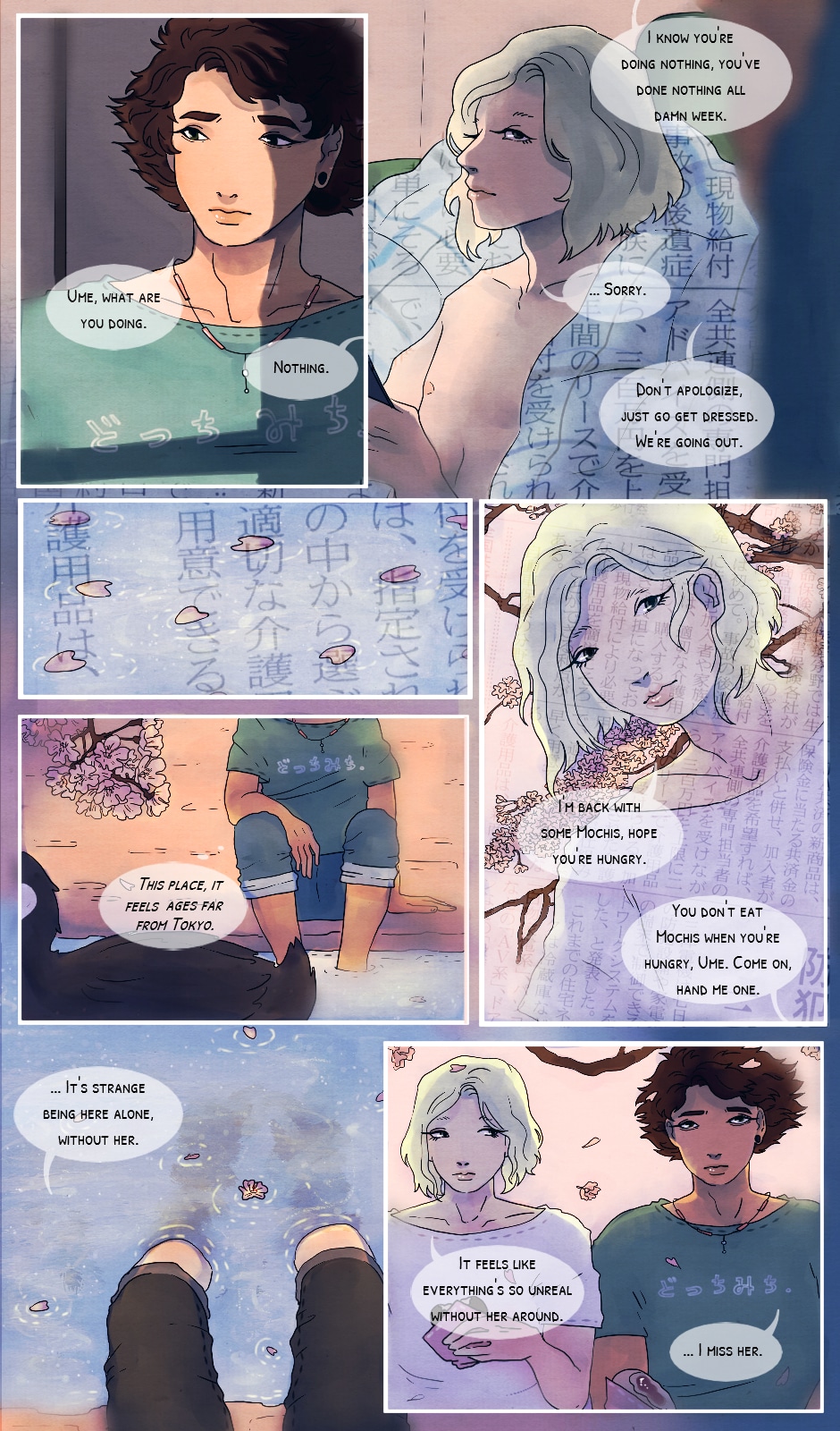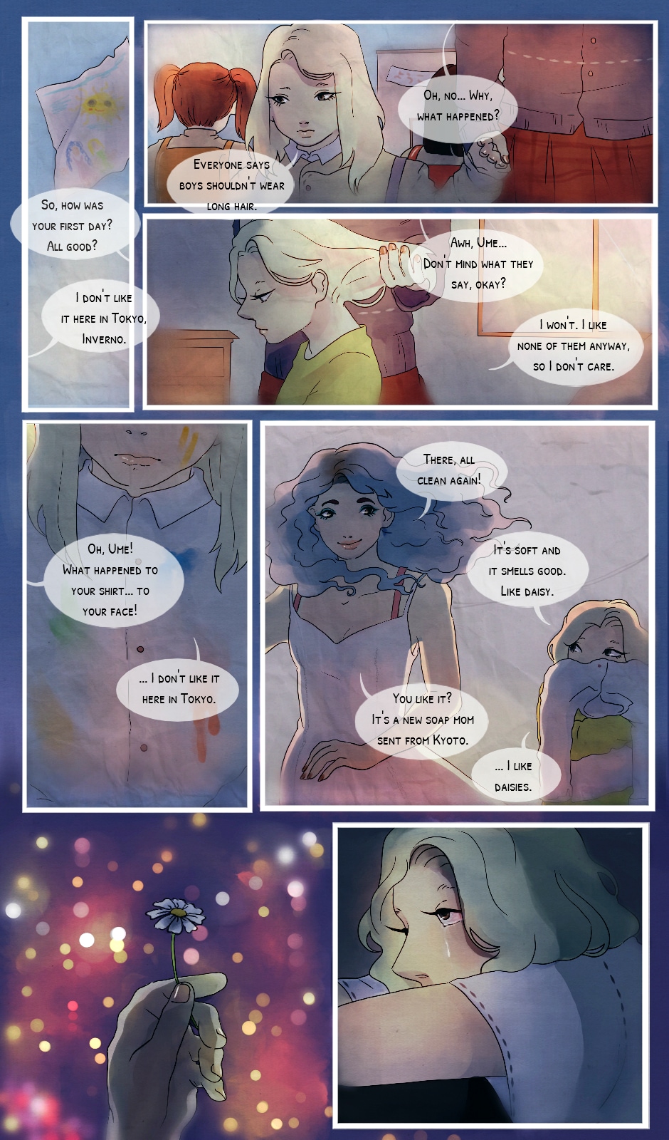 here you see the first series of flashbacks: page one and page four have different textures, keep your eyes open!! i really hope you enjoy these few pages, i know they aren't the happiest but happy holidays!! ; v ;