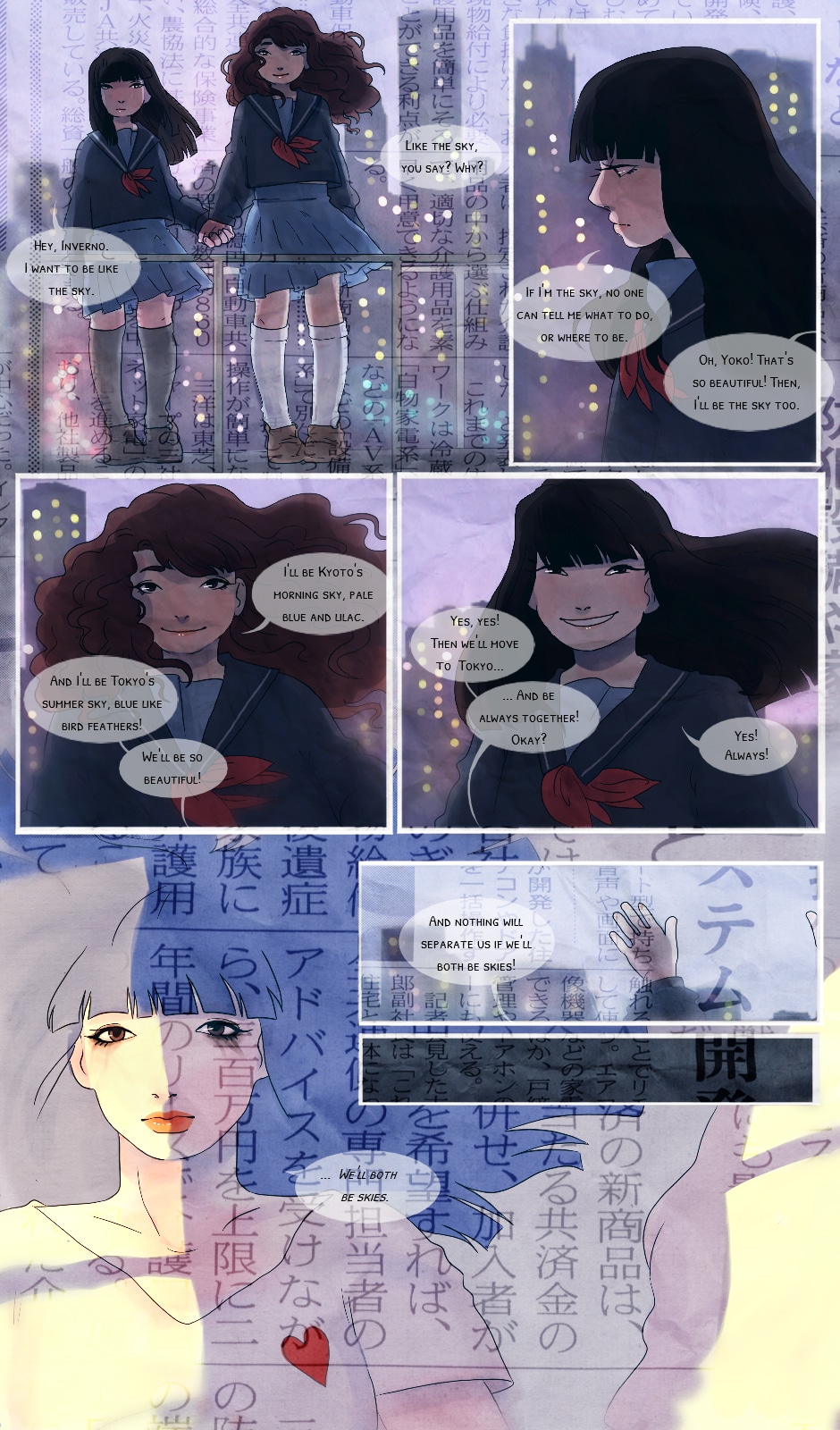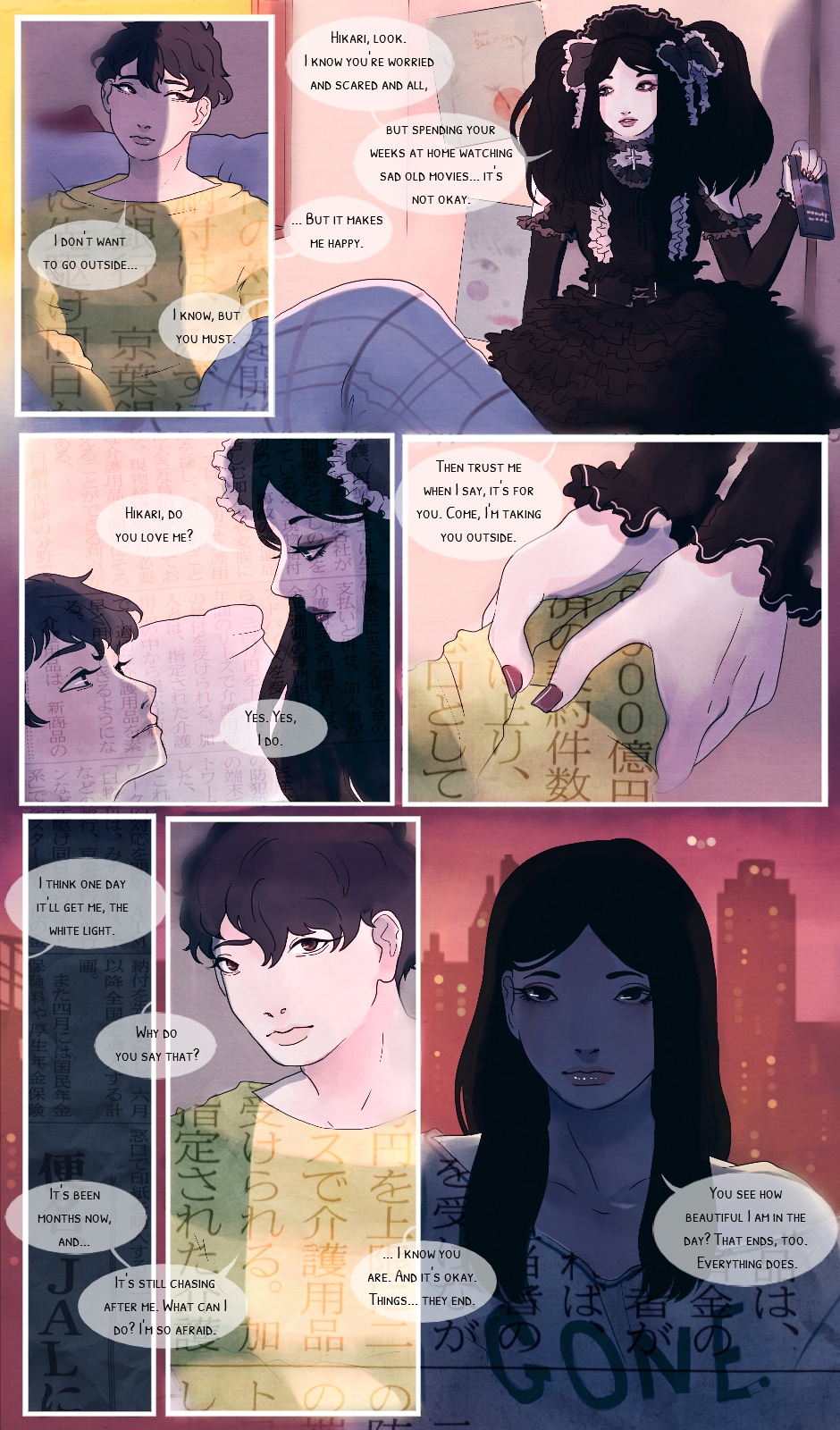 First series of the urban-Tokyo-based collection "LIES", TOKYO GIRL. is a modern tale that explores the psychology, fears and dreams of three young people: a girl only known by the name of "Yoko", a Tokyo Shore boy, Nagoyaki Hikari, and the enigmatic Ume Okimoto, an heavy heart running from a complicated past.