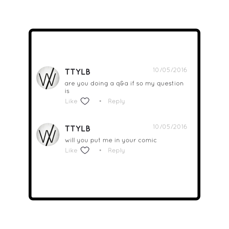 You can check out the Line Webtoon questions here: http://www.webtoons.com/en/challenge/unconsciously-funny/ep-16-q-n-a-episode/viewer?title_no=33751&episode_no=17