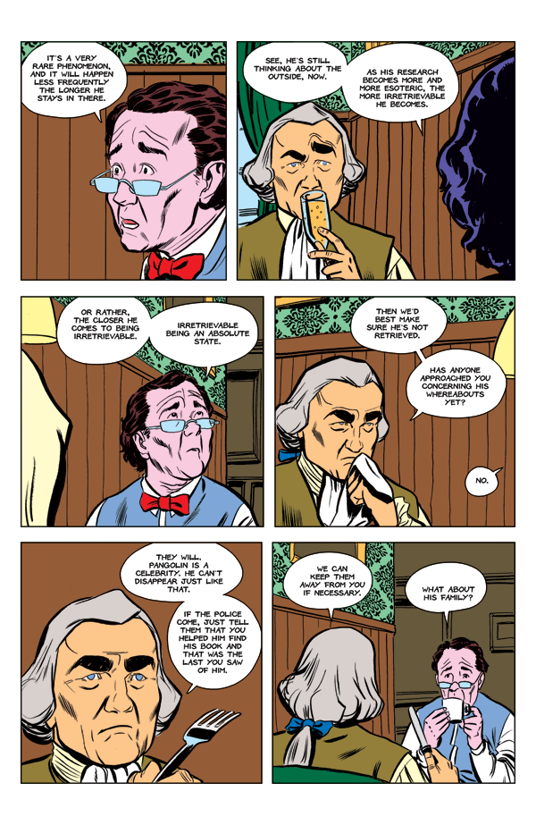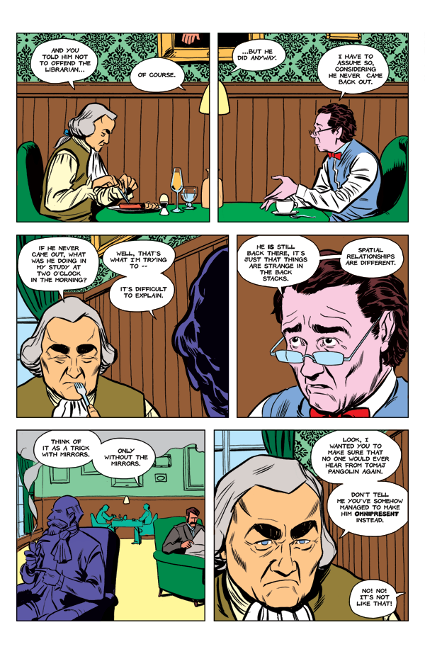 The Baron encounters an anarchist ghost and Agnes is appointed to check on Pangolin.