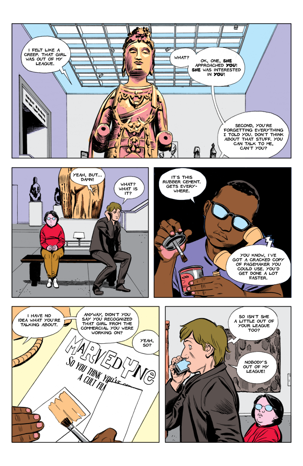 A public intellectual, a collectivist pop-star and her hard-boiled assistant, a spy, an artist, a hacker, two cinema zinesters, a baron and his family, a b-movie director turned aristocratic gangster, a group of mask-wearing cultists, a mysterious gunman, a no-nonsense bartender, an immortal grad-student, too many dogs, and a race of extraterrestrial beings are all bound together by the mysterious "Marvedyne." But do any of them really know what "Marvedyne" is?