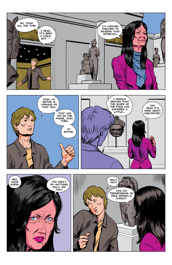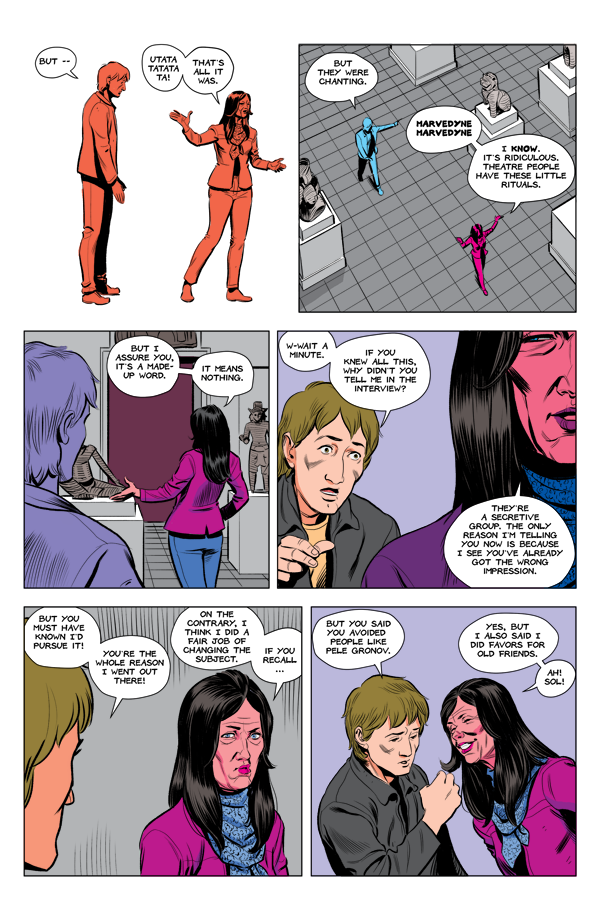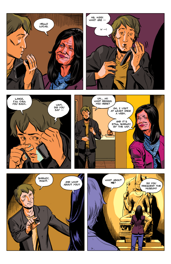 Carla is a victim of her own success as a code-breaker while Luke and Shirley meet by chance (?) at the museum. Featuring Felix Vulpine/ Sol Kidd/ Quinton, Pele Gronov's mask-wearing heavy.