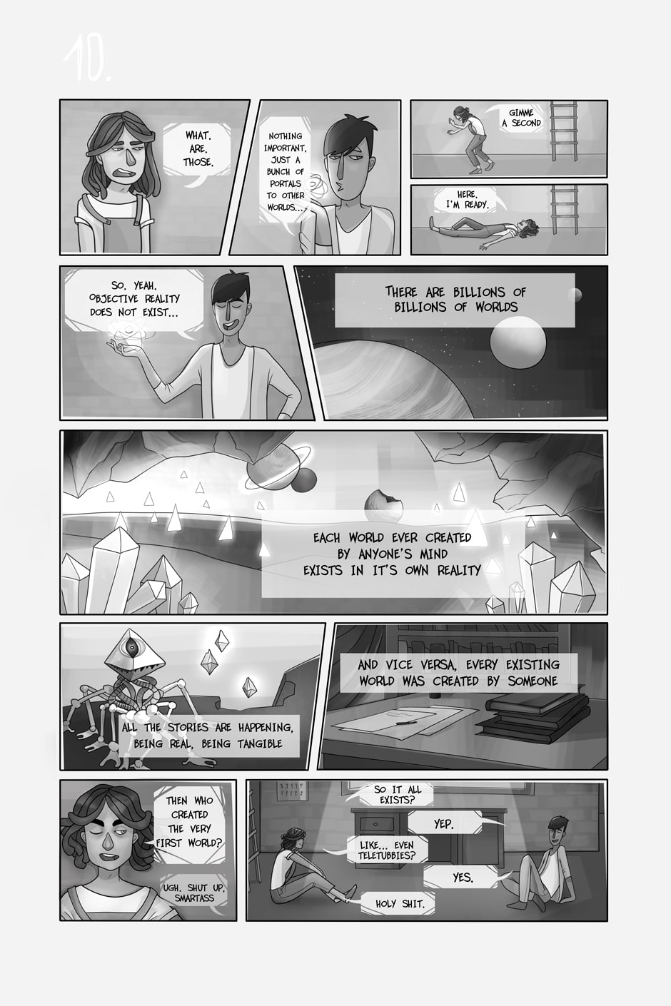 Here's the fun thing: I had the script for this and next pages on my phone, but my phone got stolen. So here I am, drawing a page with EXPLANATIONS not having a clue what to explain as the script was written months ago. So responsible, much creator, wow.