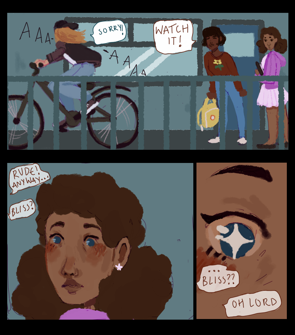 riley nearly knocks over two cute gals.