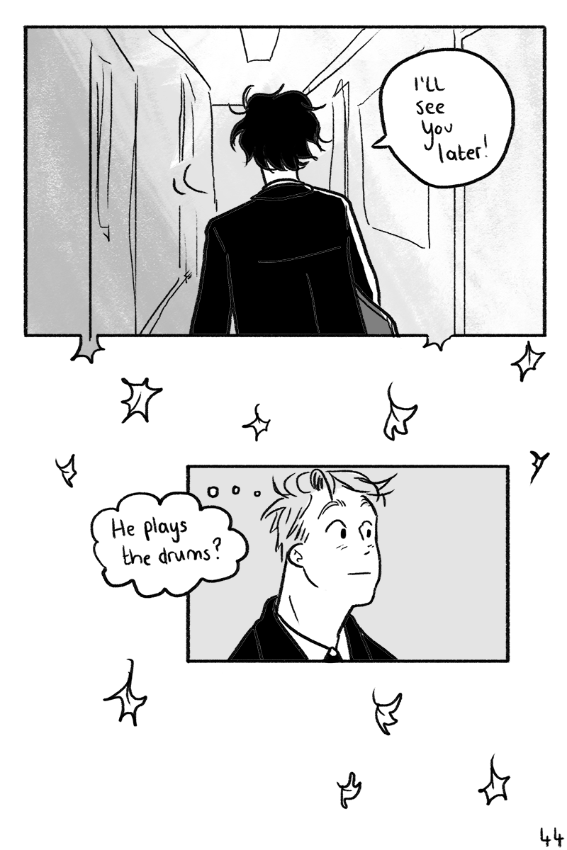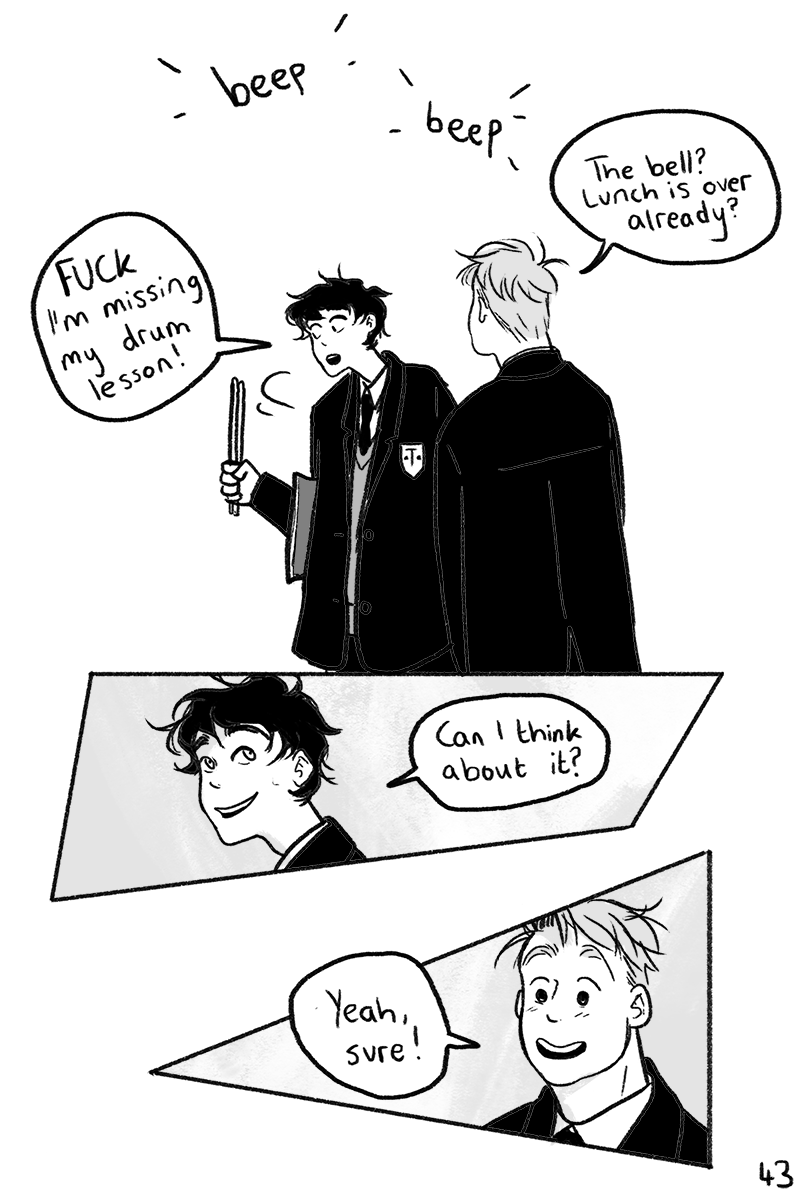 i don’t know if this is a normal thing outside of the UK (i mean it probably is, but i don’t wanna leave loads of you confused), but in many schools in the UK, you can pay for one-on-one musical instrument lessons. they’re normally like 20-30 minutes long and usually you have them during school hours - which is why Charlie is rushing to a drum lesson even though lunch has just finished and everyone else will be going to registration/form!