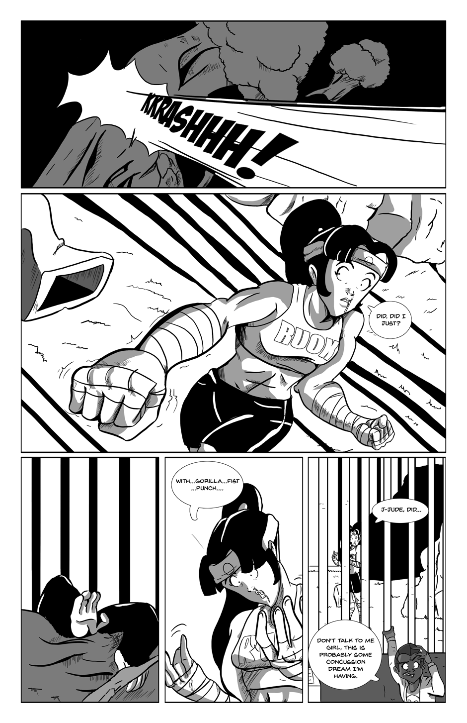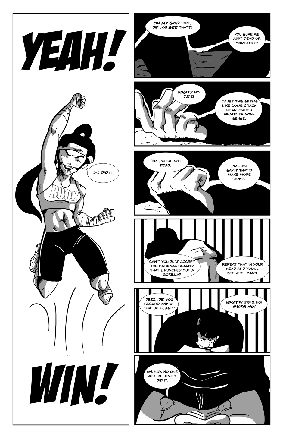 Godrilla is a short, over-the-top action romp that follows Hikari, a young martial artist who wishes to do nothing more than improve her skills, who in response to legends of martial arts masters training on wild animals and the prodding of her less than trustworthy friend Jude, finds herself breaking into a zoo one late night to fight a Gorilla. Things proceed to get a bit out of hand from there.