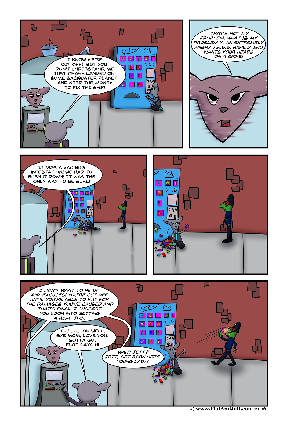 Sometimes the universe can be a bit of a jerk. As heirs to the Lioka family fortune and possible future co-CEOs of Lioka Galactic Enterprises, Flot and Jett had it all. Except of course, for common sense. Forced by their mother to prove themselves by running their own business, they quite literally watched it go up in flames. Now saddled with a massive debt, and totally cut off from their familial resources, it’s time for Flot and Jett to sink or swim, and with their luck… they’ll sink all the way to the top!