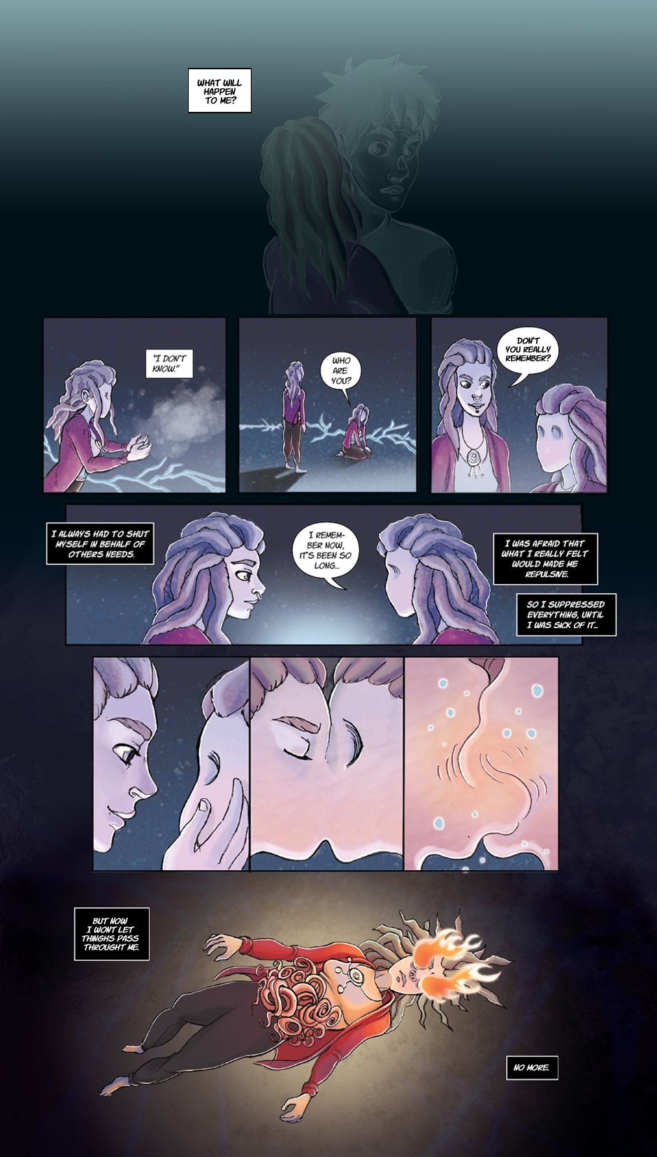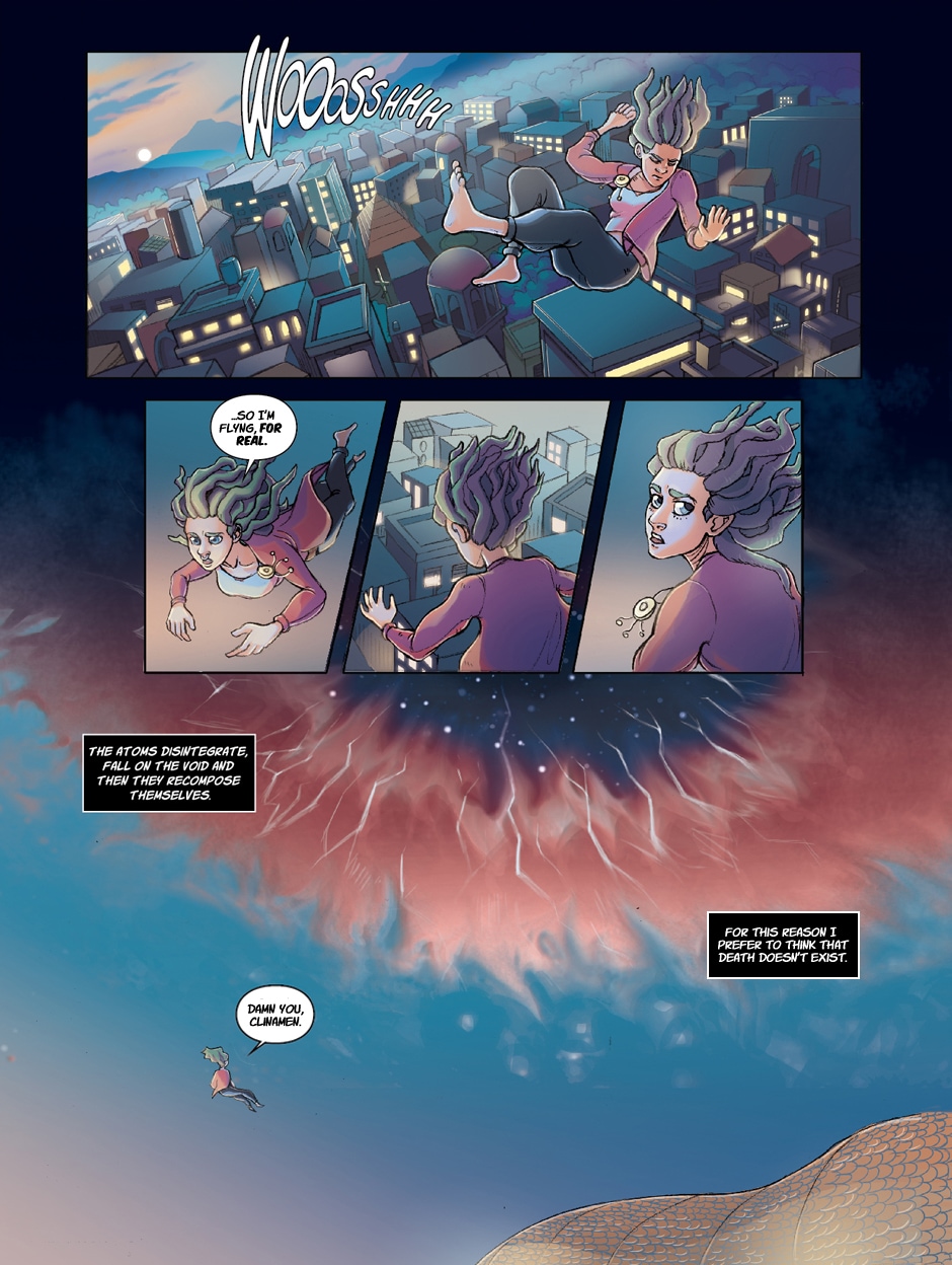 There are people who avoid any kind of suffering, they pretend to don't see what they have to face, this efforts will eventuallay end up erasing a piece of them. Their illusion is that everything is always fine, and for this reason they cannot explain the void that they feel. Although he is the "weird one", Clinamen thinks that his sister Kenè, despite her normal behaviour, is a mystery, as if she's hiding something.