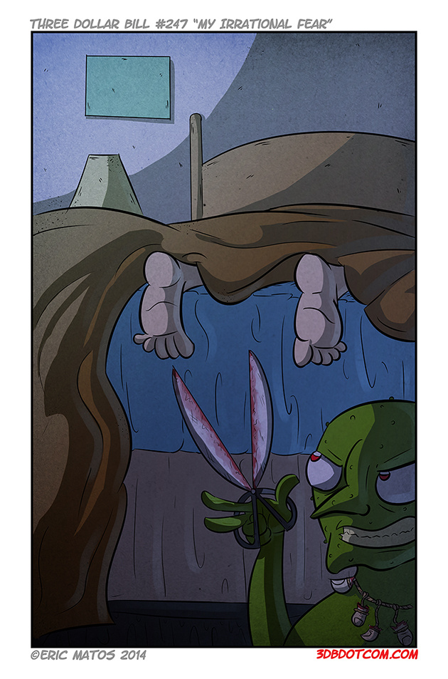So this is why I HAVE to cover my toes at night. It’s either a goblin with scissors, or some monster waiting to bite my foot off. A more legitimate fear would be that my 6 month old puppy would bite my toes, Because that’s actually happened, but never-the-less, my toes are in danger without the protection a thin layer of fabric over them. It’s weird how much safer a blanket can make you feel at night. Humans are fucked up in the head.
