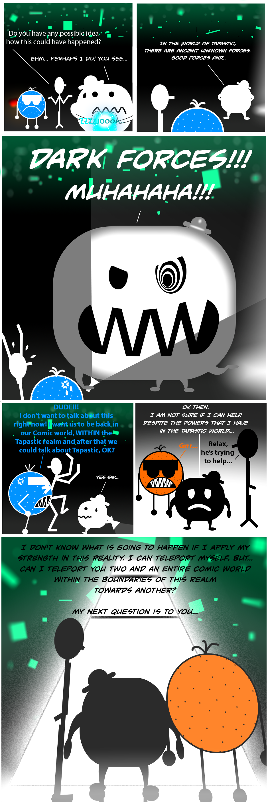 Hm... Mr. Tapastic is having less confidense about the situation. COME ON! Hurry up and get us BACK in the Tapastic Realm!