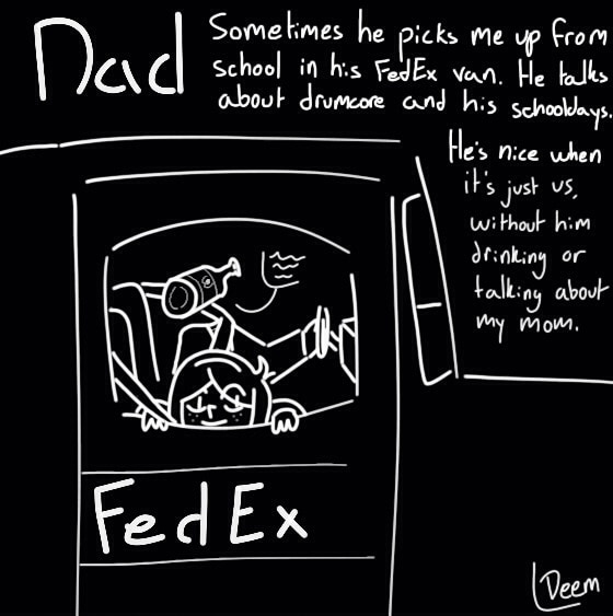 The Vague World of Deem, who lives an average life that's just a tad off from normal, domestic abuse from a child's point of view exaggerated by paranoia and other problems that just go ignored.