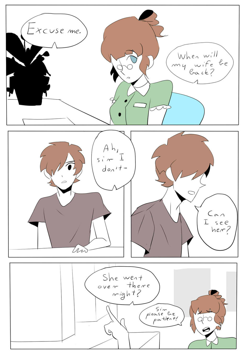 No he will not be patient. His wife could be in danger and honestly the whole thing looks sketchy and he is right to be worried!!!!!!!!!!!! Go husbando save your waifu!!!!!