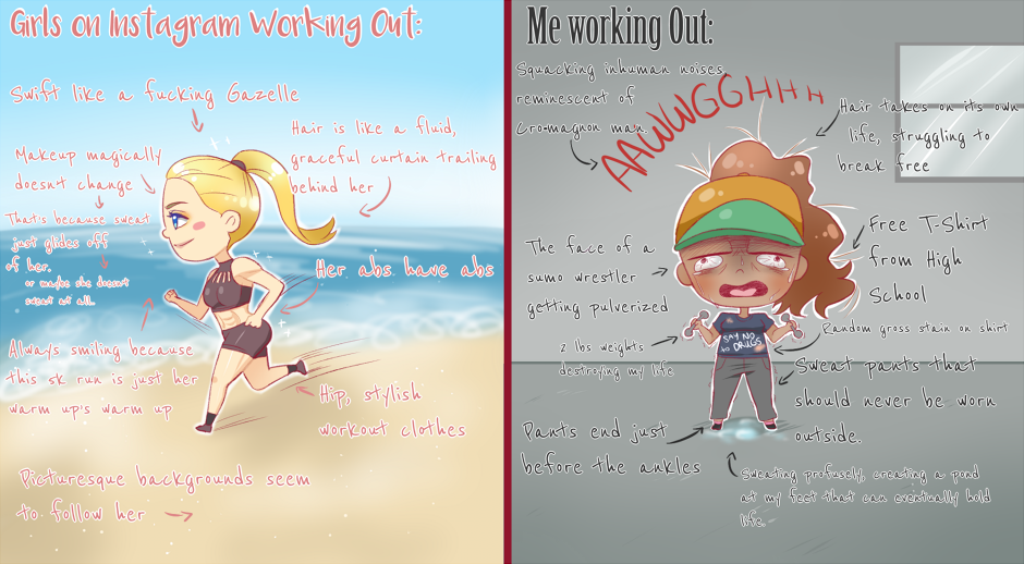 Life is hard. Working out is a struggle. Looking perfect while working out is just unattainable XD Please check out my DeviantArt: http://sleepy-mia.deviantart.com/