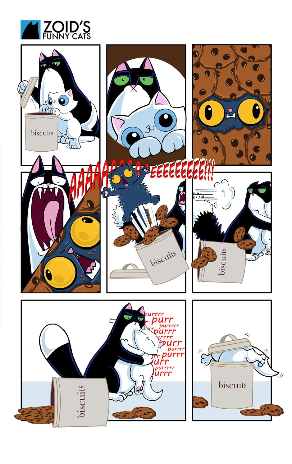 A comic about two very different cats! Rugford is a cheeky little male Persian who has unlimited optimism and Egg is a huge grumpy Tuxedo cat who has had enough of his nonsense.