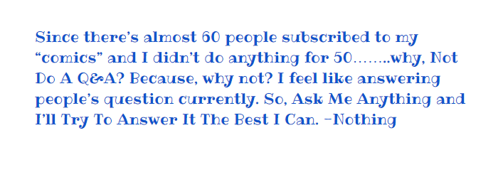 These are just screenshots (since I can't draw) of story concepts, Ideas, and other things that flow through my mind. Nothing special really. (Note: Many of this stuff are inspired or I just thought up randomly. They also belong to me, so don't steal them.)