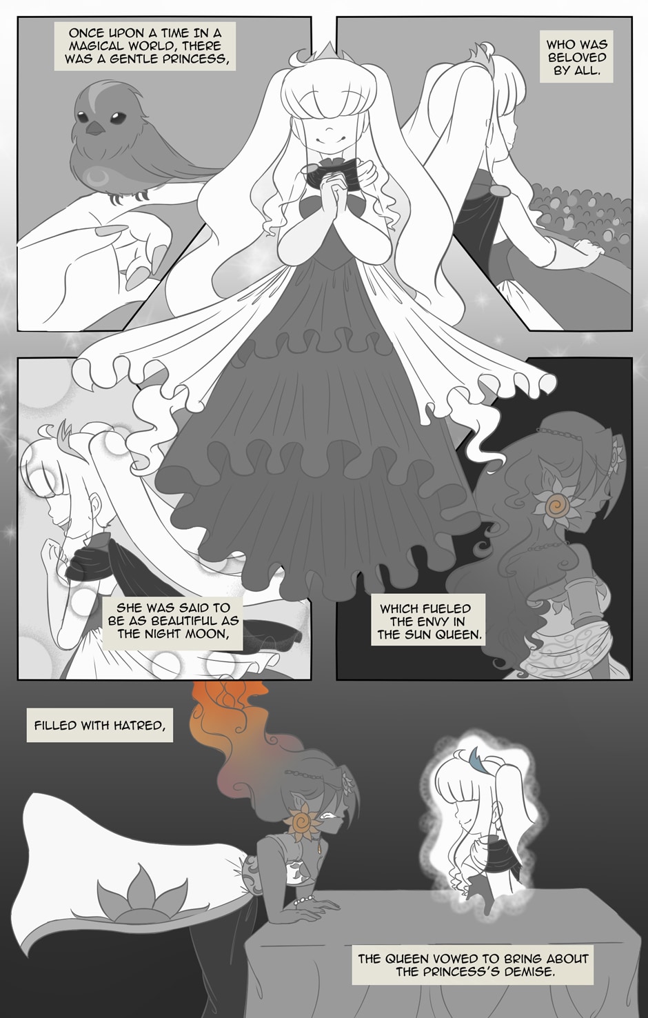 Spirit Magic is about a young witch girl named Nausika Astrophel, who possess a rare magic that is able to only affect disembodied souls. Using this magic, she peacefully helps ghosts move on, with the help of her two familiars; Lucius and Trina. Perhaps along the way she may even discover what happened to her missing father.