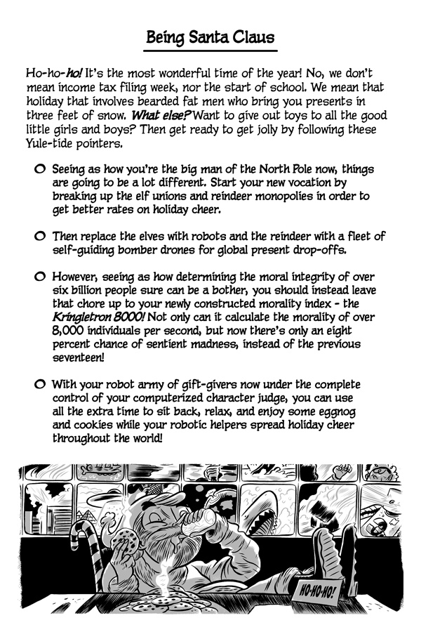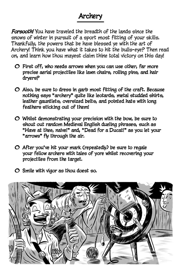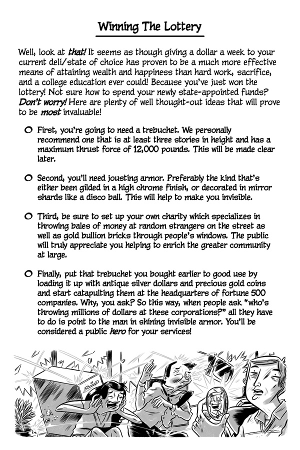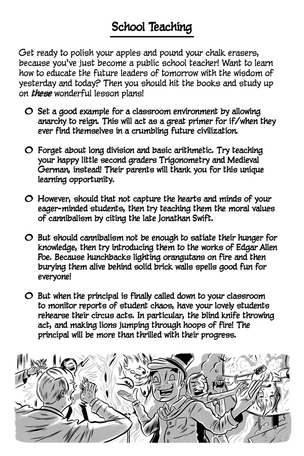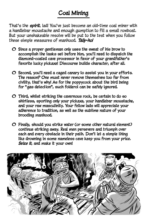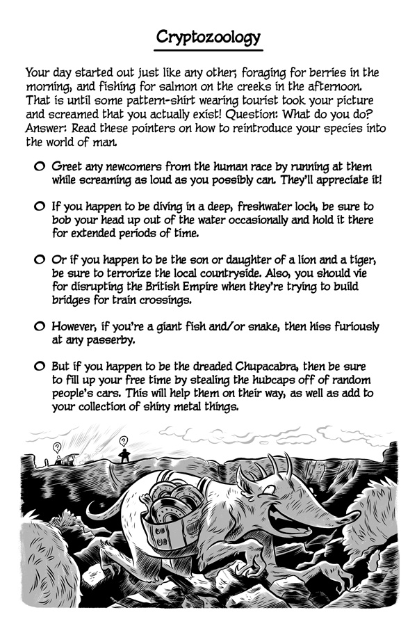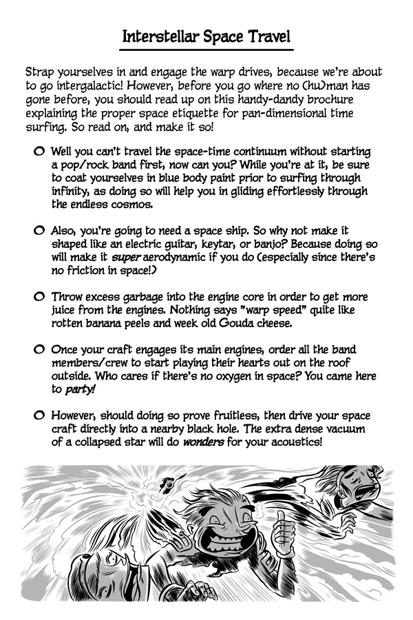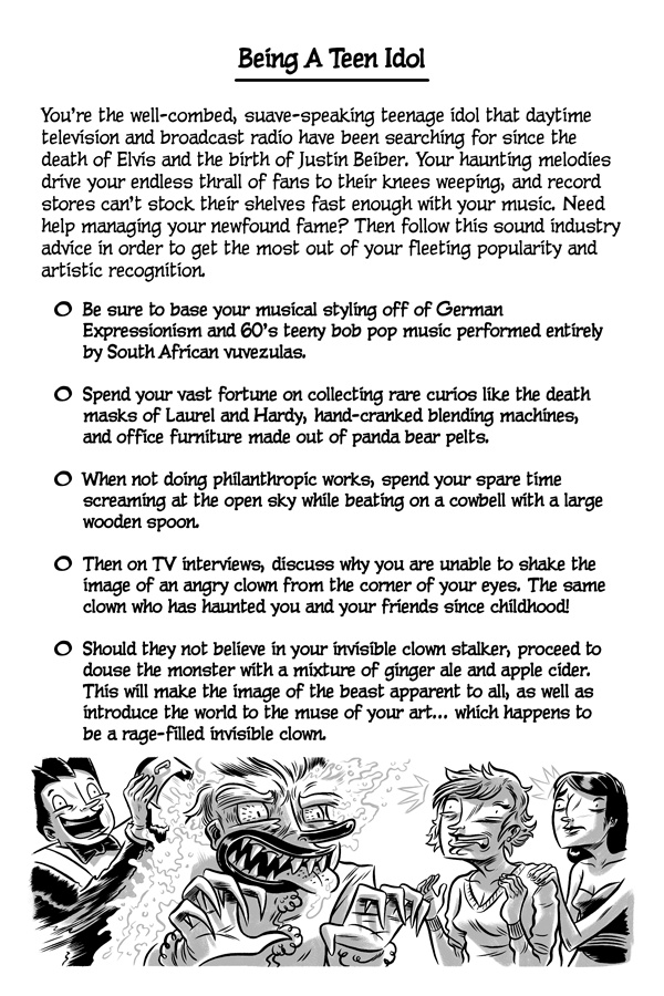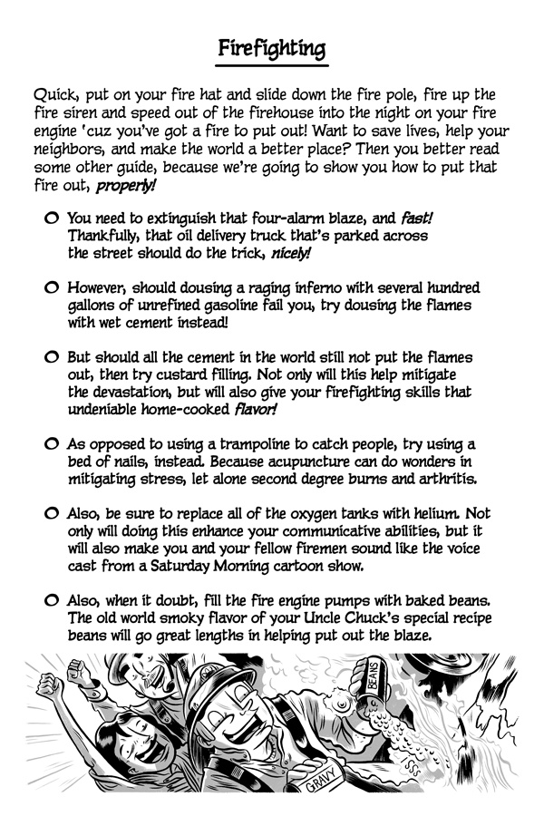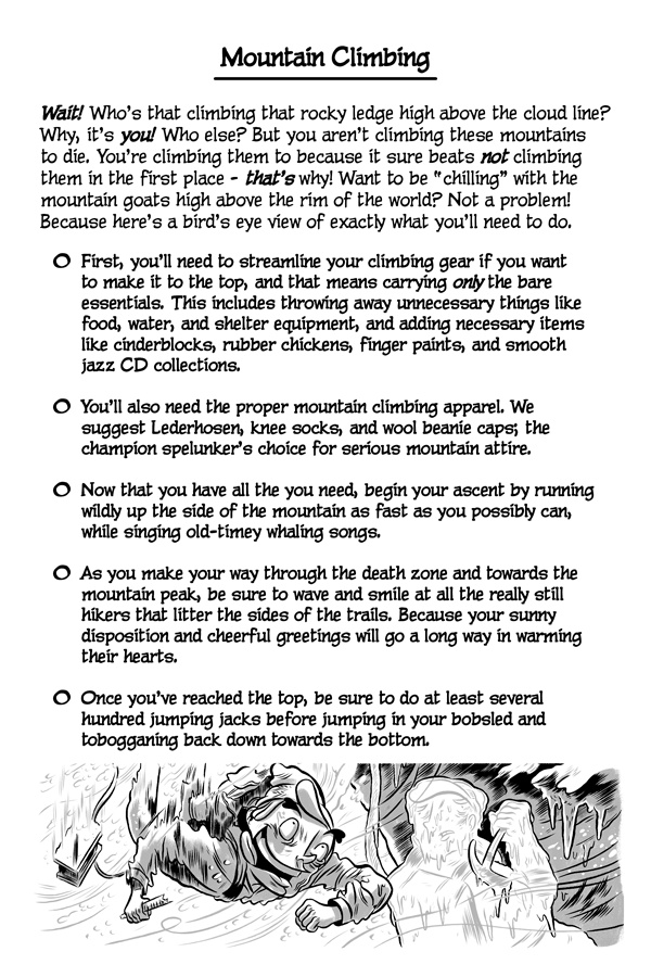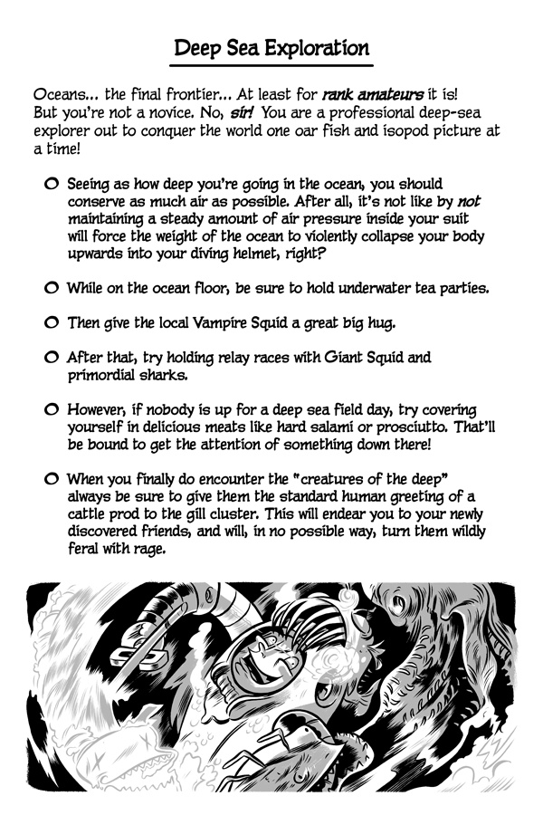 Greetings, online reader! Do you like failing, miserably? Well, good news! Because now there’s a new series that’s been made just for you! It’s called The Cartoon Guidebook To Absolute Failure and it’s the “bee’s knees” of anti-help fun! Written by Erik Craddock, and illustrated by Logan Faerber, this online collection of rock-solid advice contains over two hundred pages of complete and utter fail! So what are you waiting for? Start reading! Because if you can think it, then you can fail it, guaranteed!