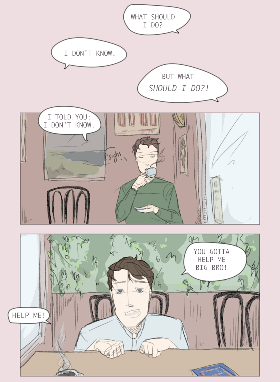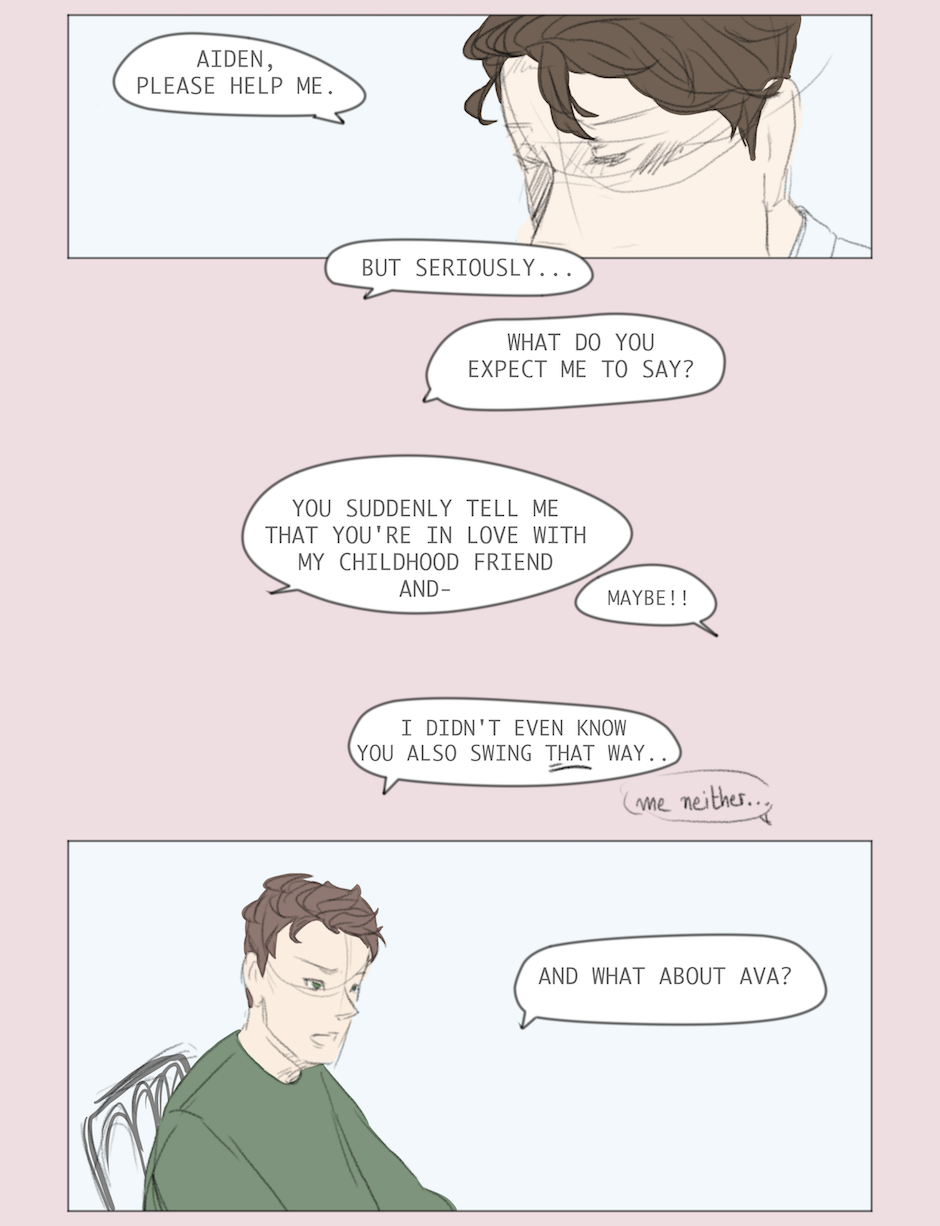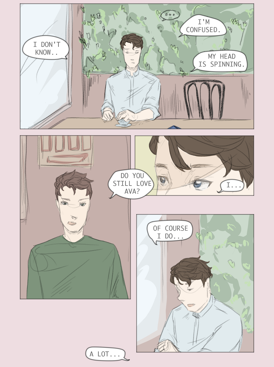 My first versions of the characters were always black and white. While drawing these pages, I realized that I never thought about Ava's hair colour... I had to try so many colours out until i was satisfied :D